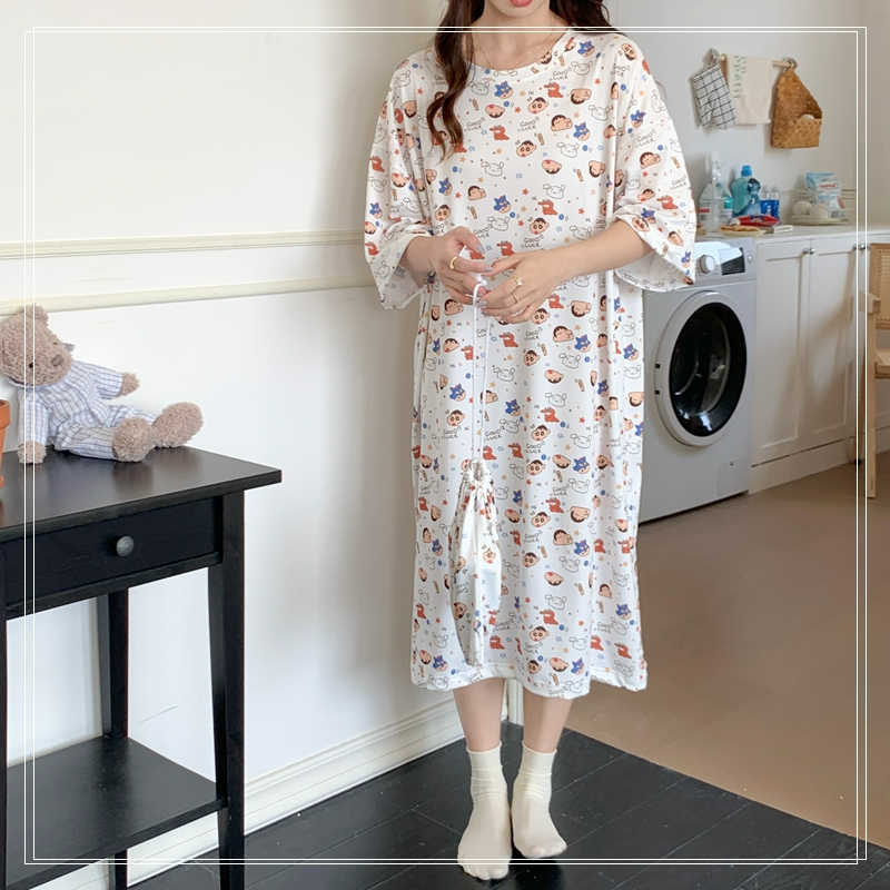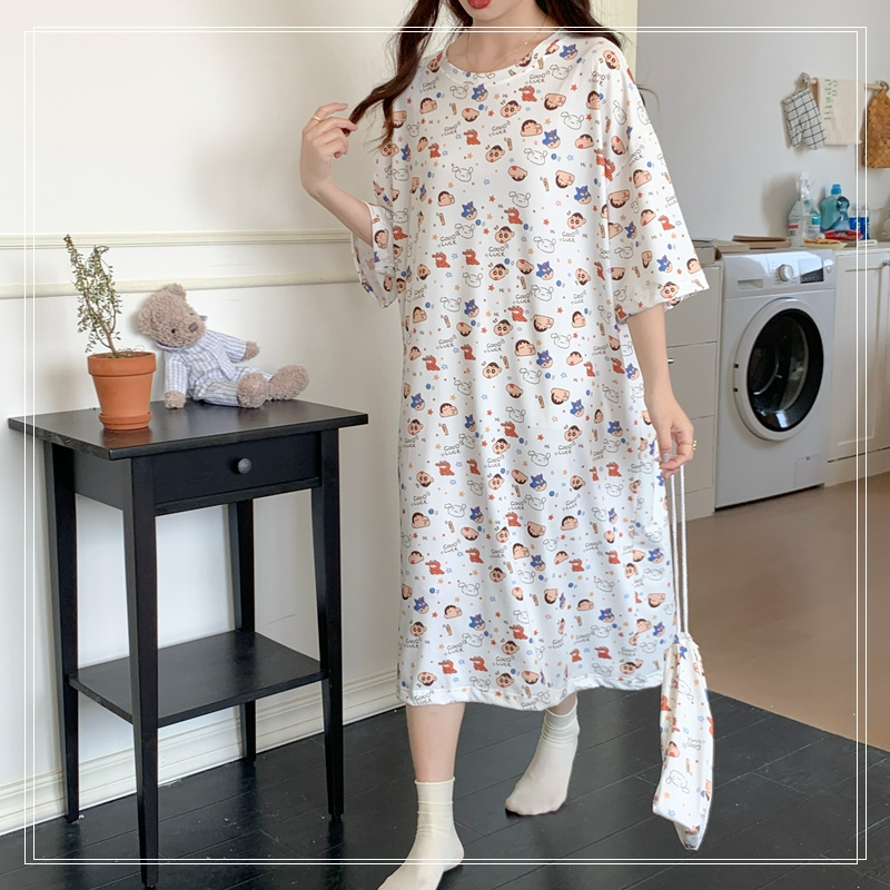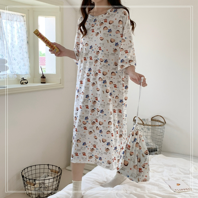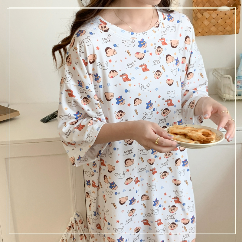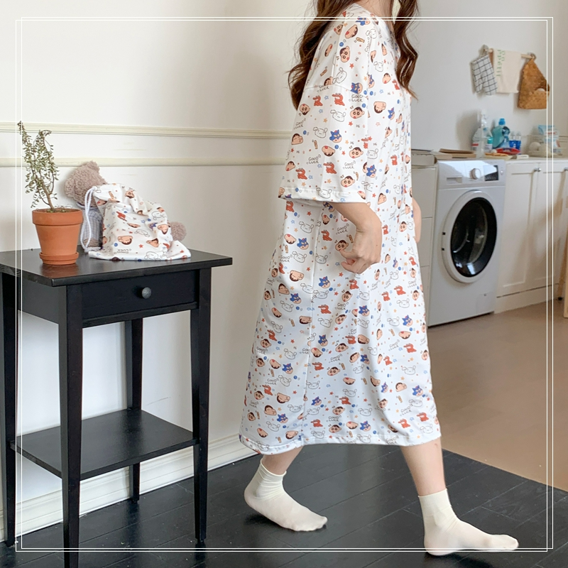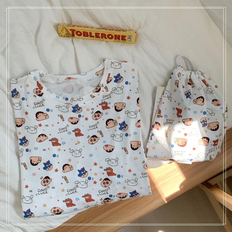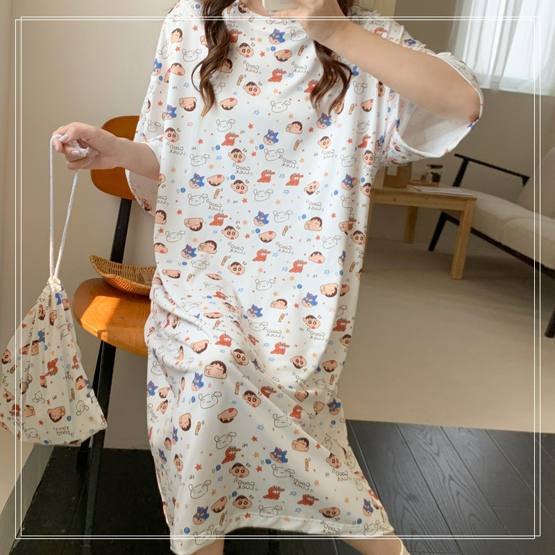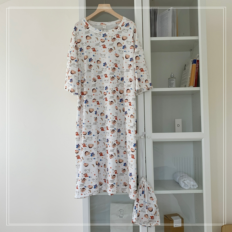 짱구 반팔 원피스 잠옷 (화이트) 일본 캐릭터 빅사이즈 파자마 파우치 세트SOLDOUT