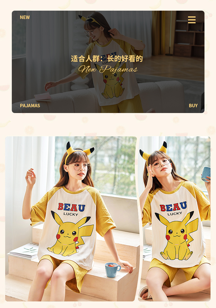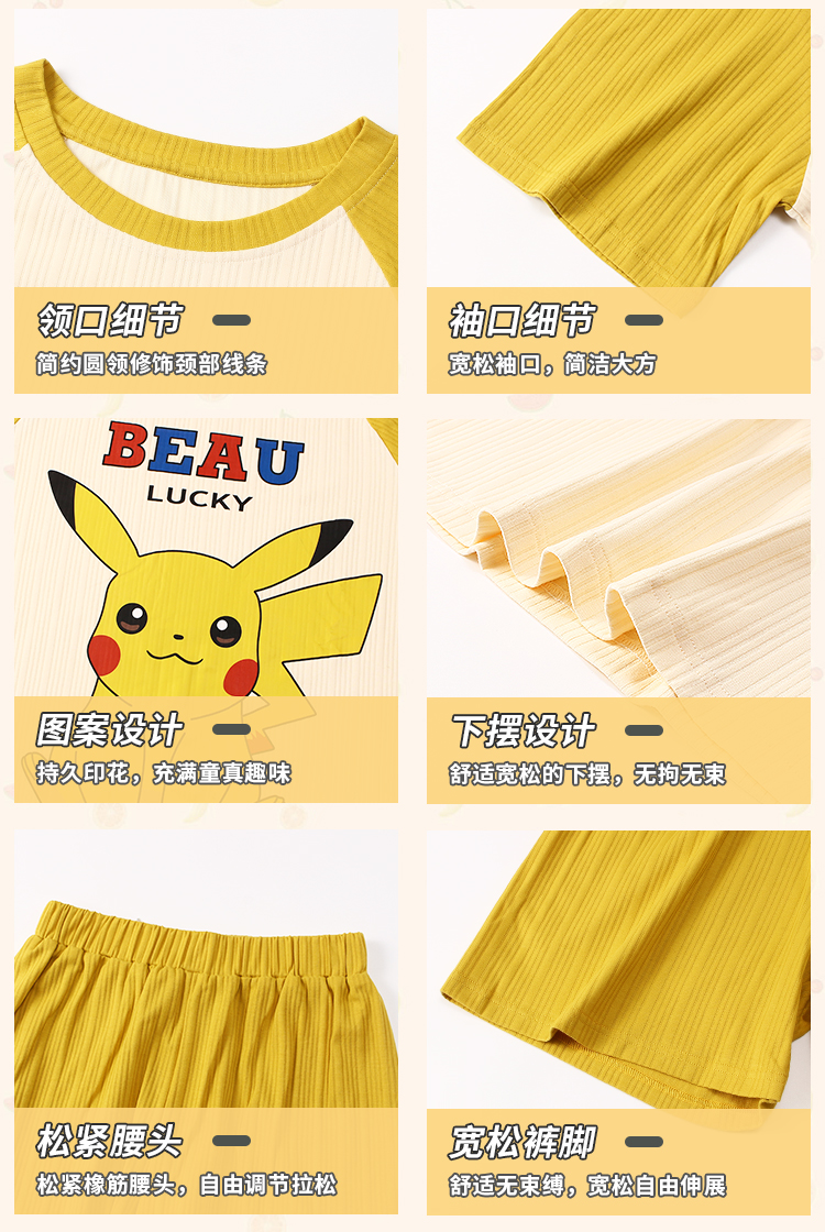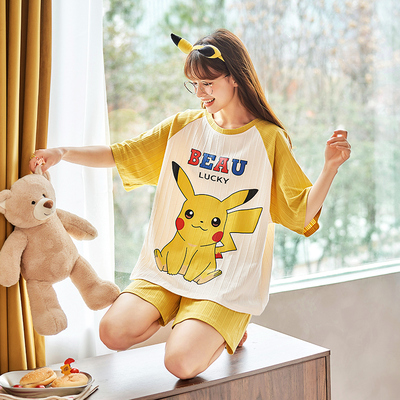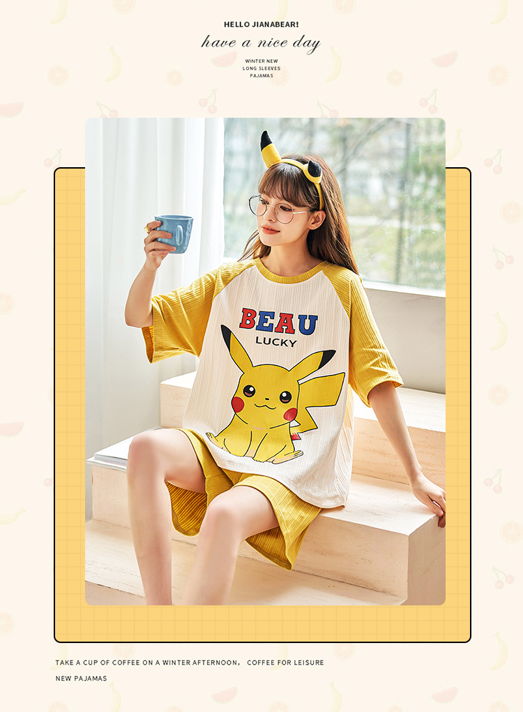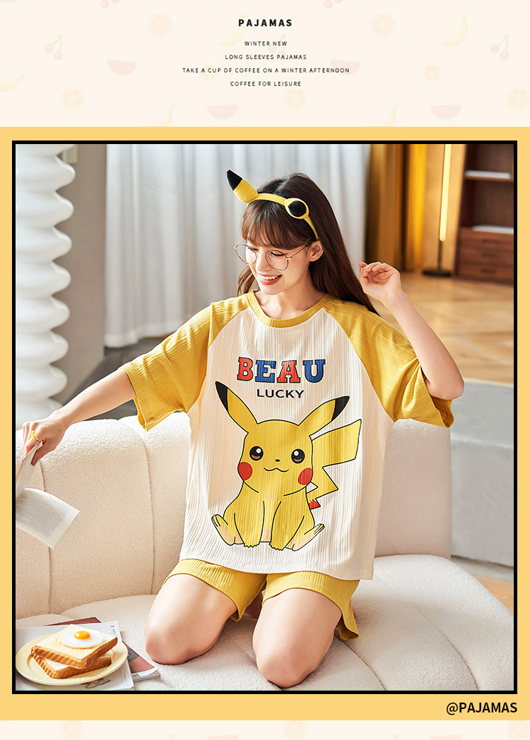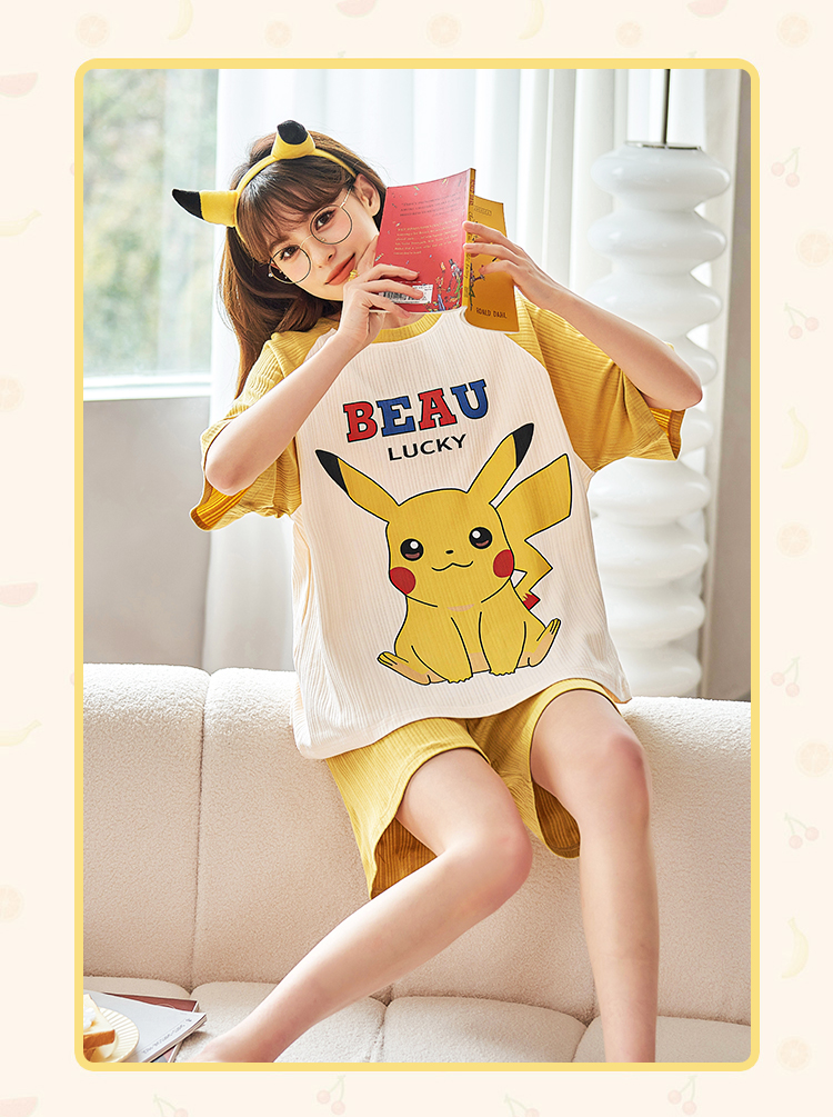 포켓몬스터 피카츄 반팔 반바지 잠옷 (옐로) 캐릭터 여름 파자마