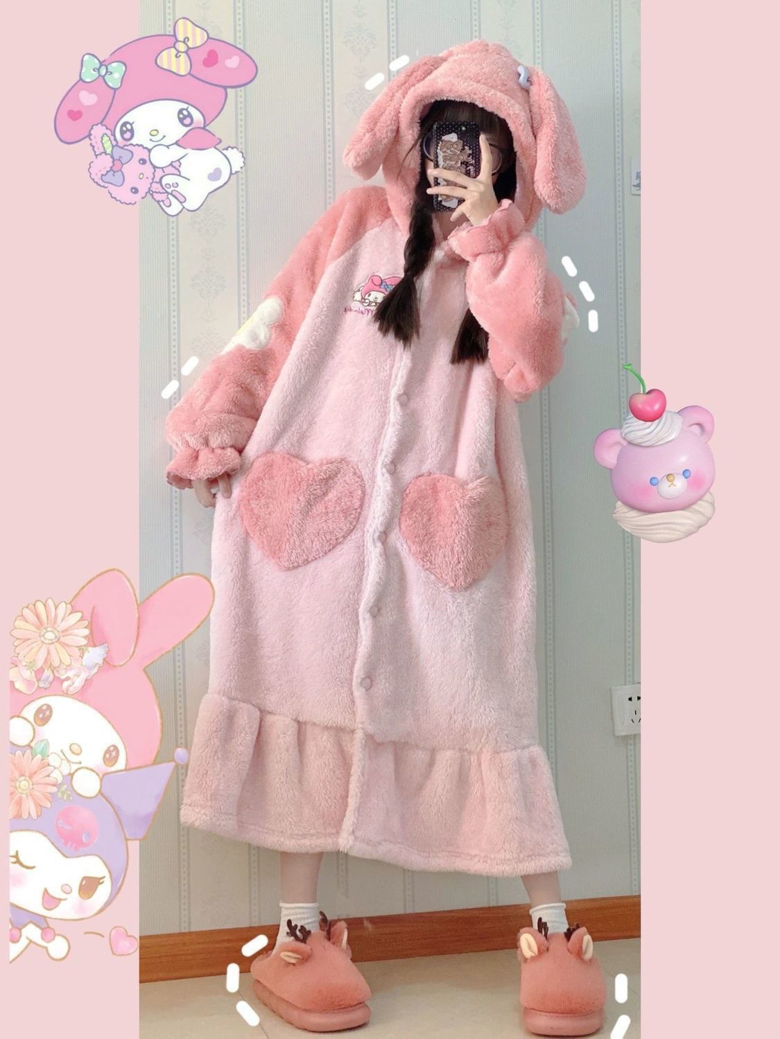 툭 걸치기 좋은 코트형 잠옷으로!