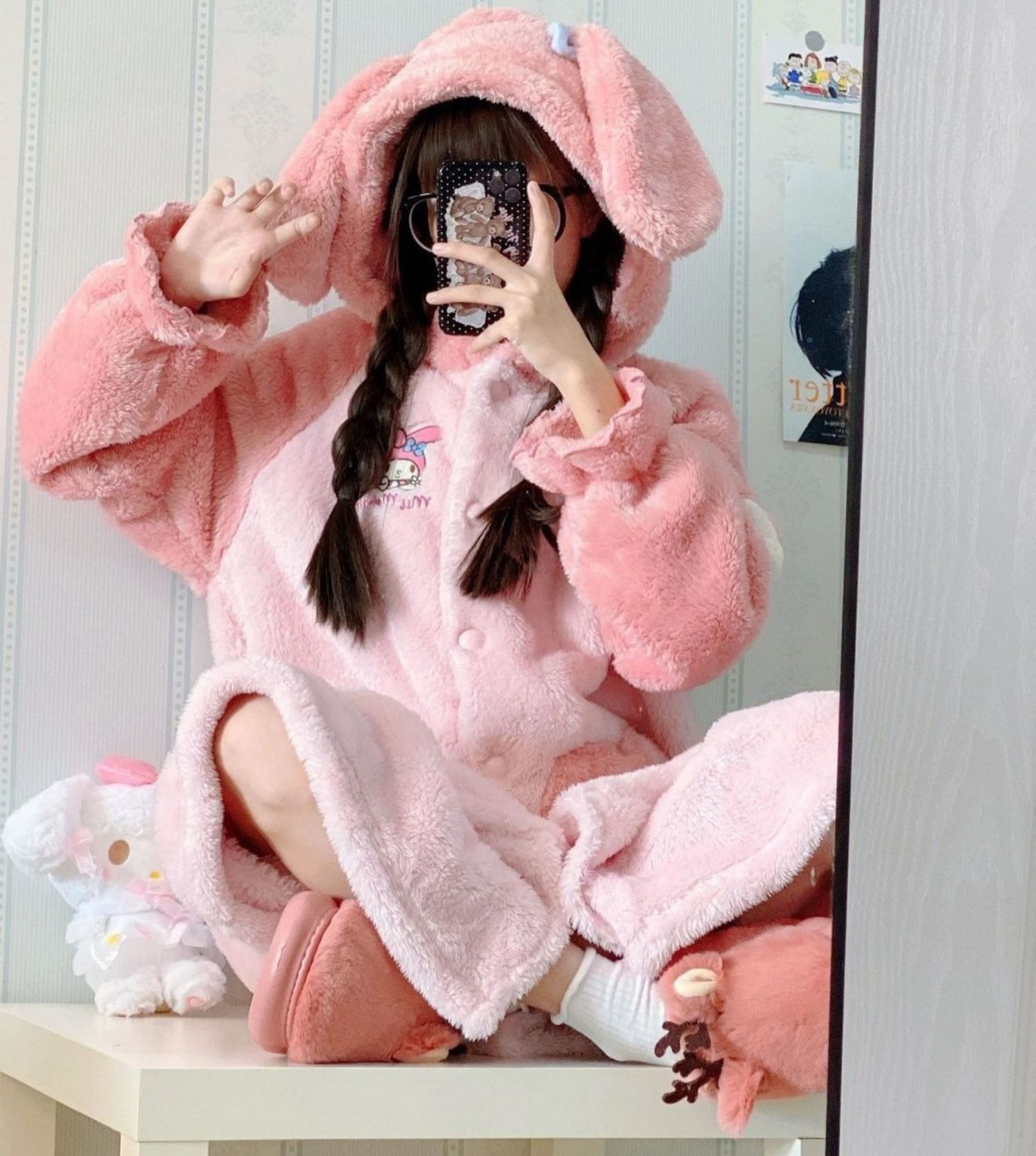 극세사 재질의 경우 신축성이 적어 큰사이즈 권장드려요!