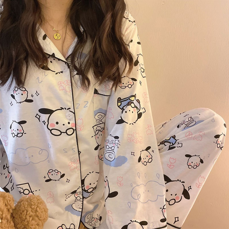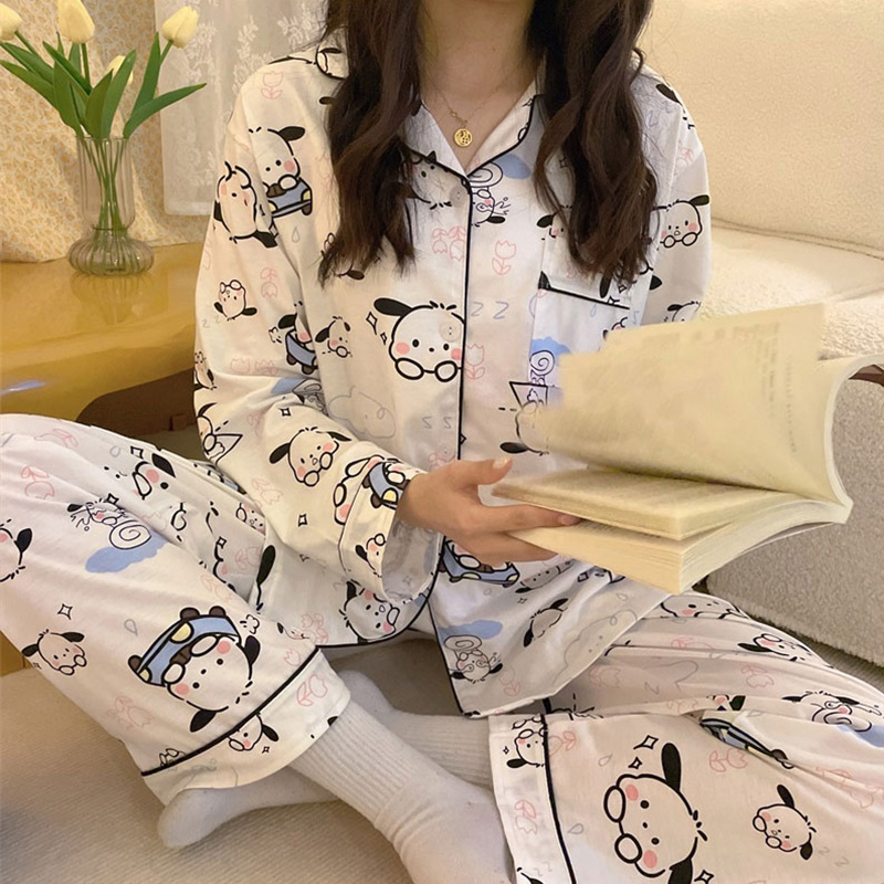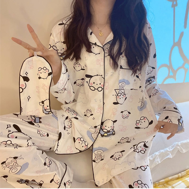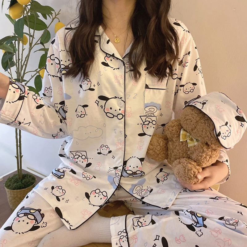 포차코 긴팔 잠옷 (화이트) 산리오 캐릭터 봄 가을 간절기 파자마