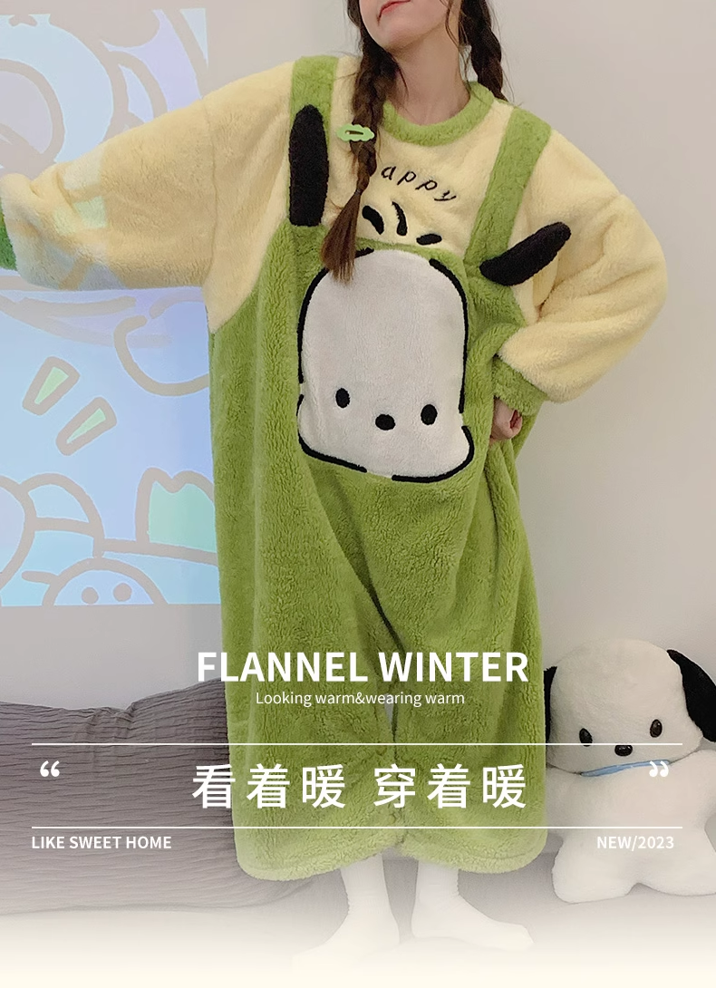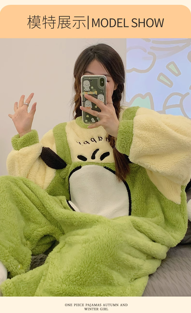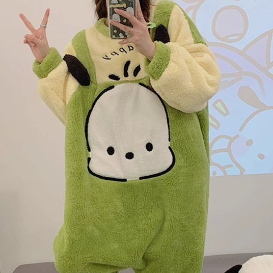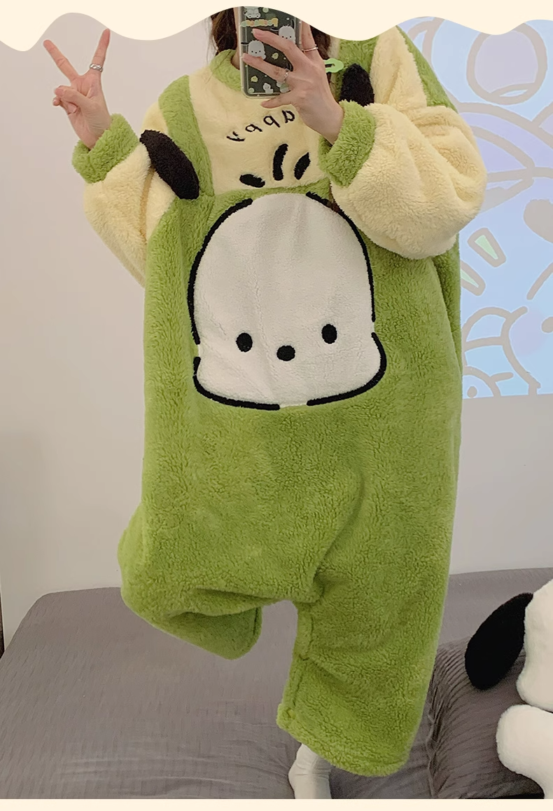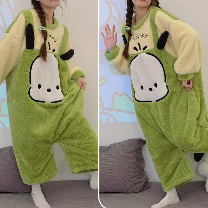 포차코 점프수트 극세사 잠옷 (그린) 산리오 캐릭터 겨울 수면 파자마 빅사이즈
