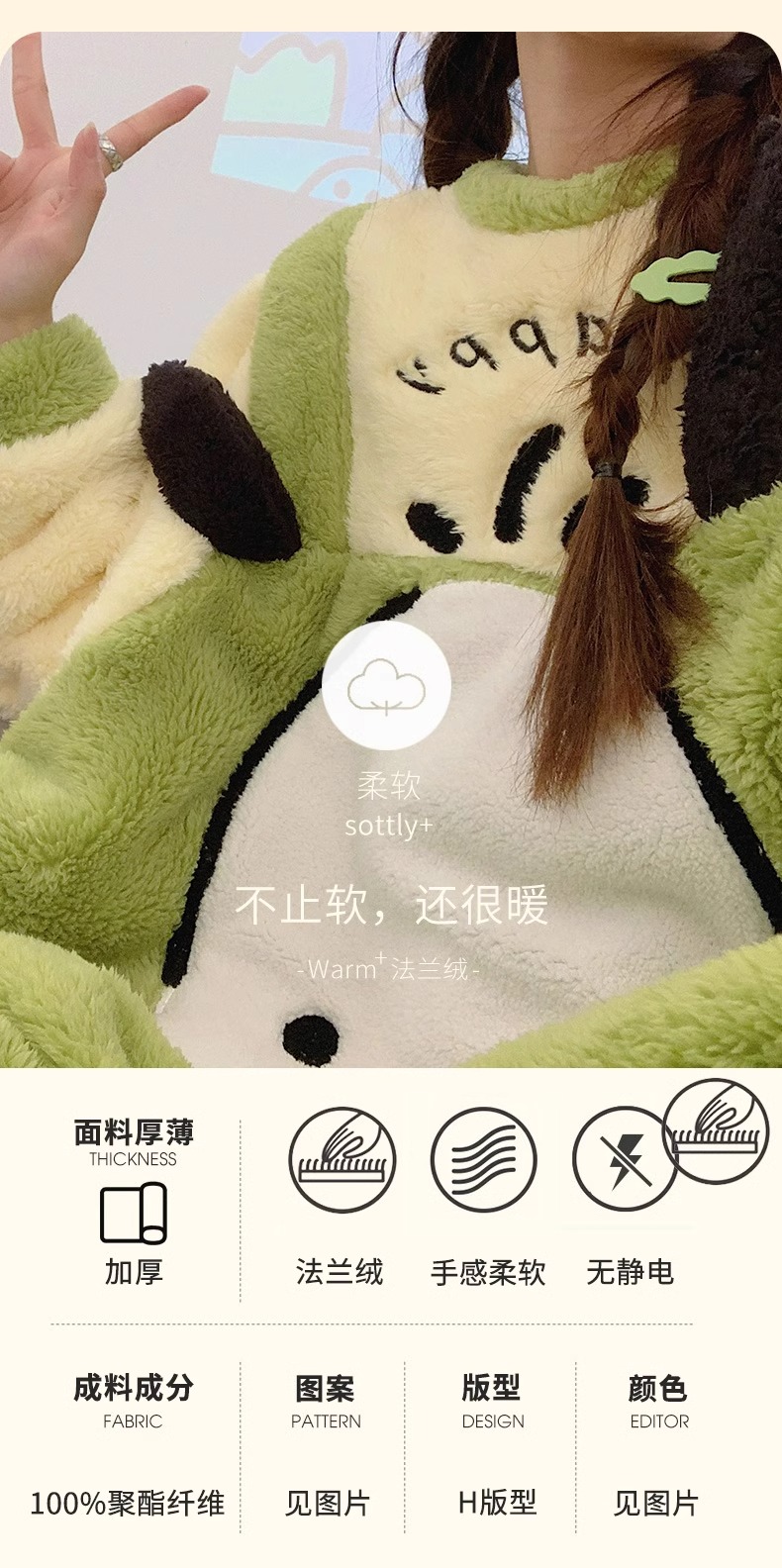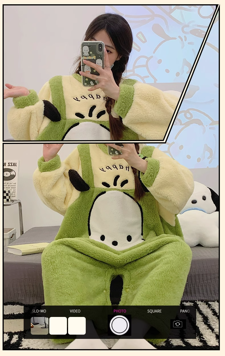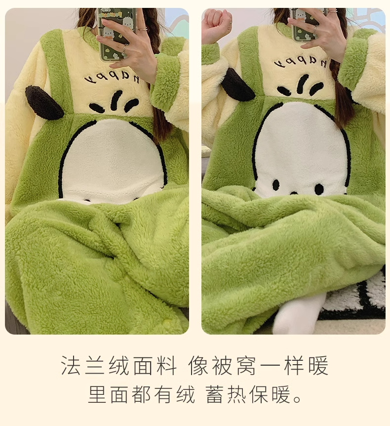 포차코 점프수트 극세사 잠옷 (그린) 산리오 캐릭터 겨울 수면 파자마 빅사이즈