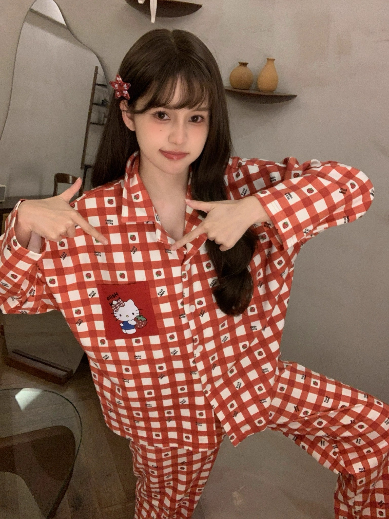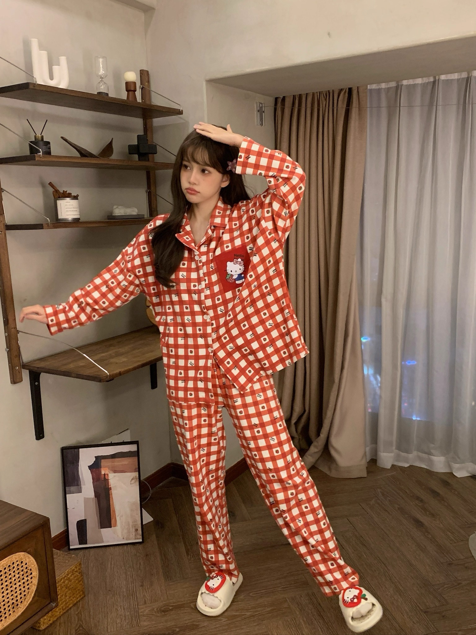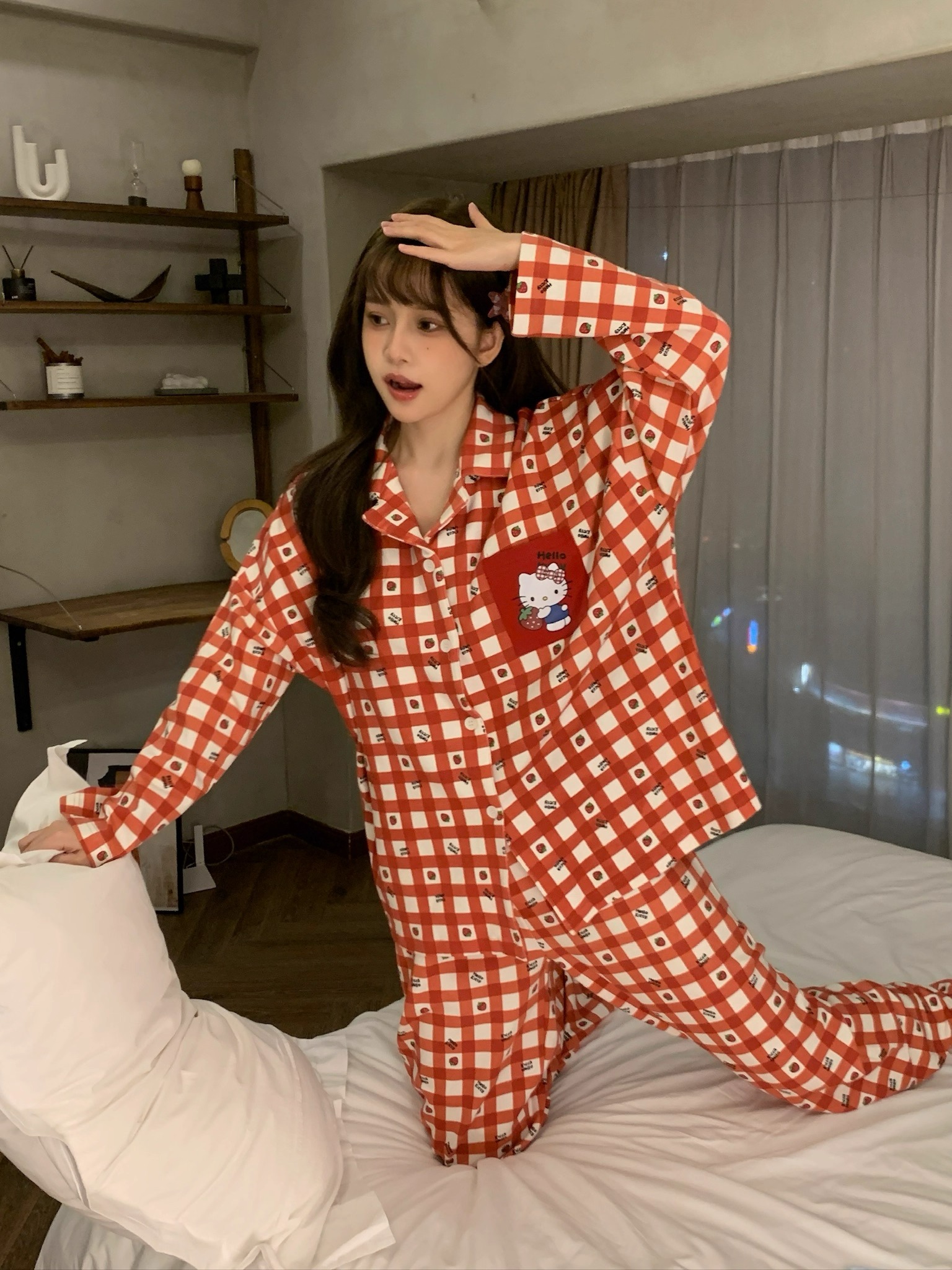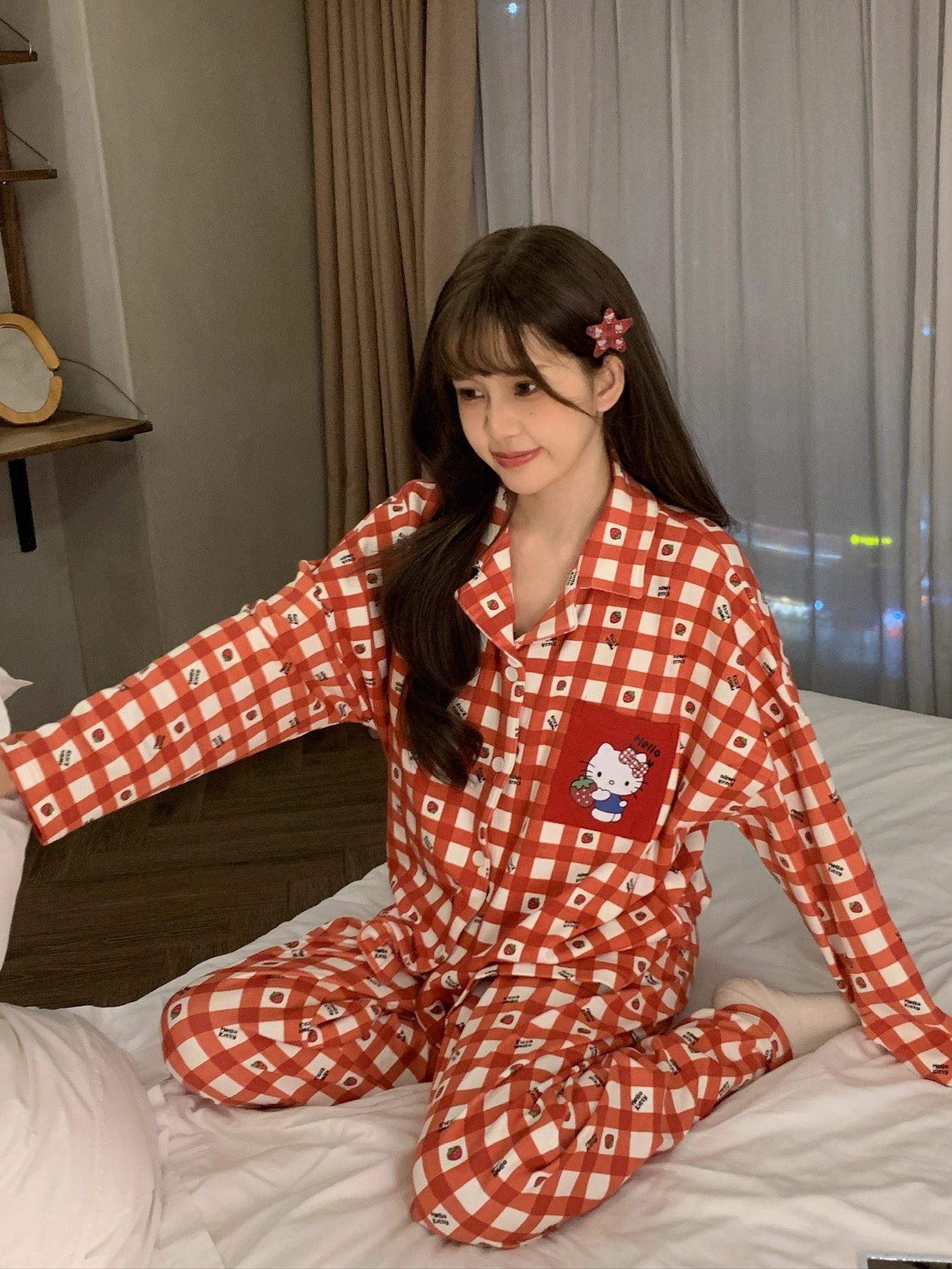 따듯하게 입을 수 있는 순면 키티 잠옷이에요 :)