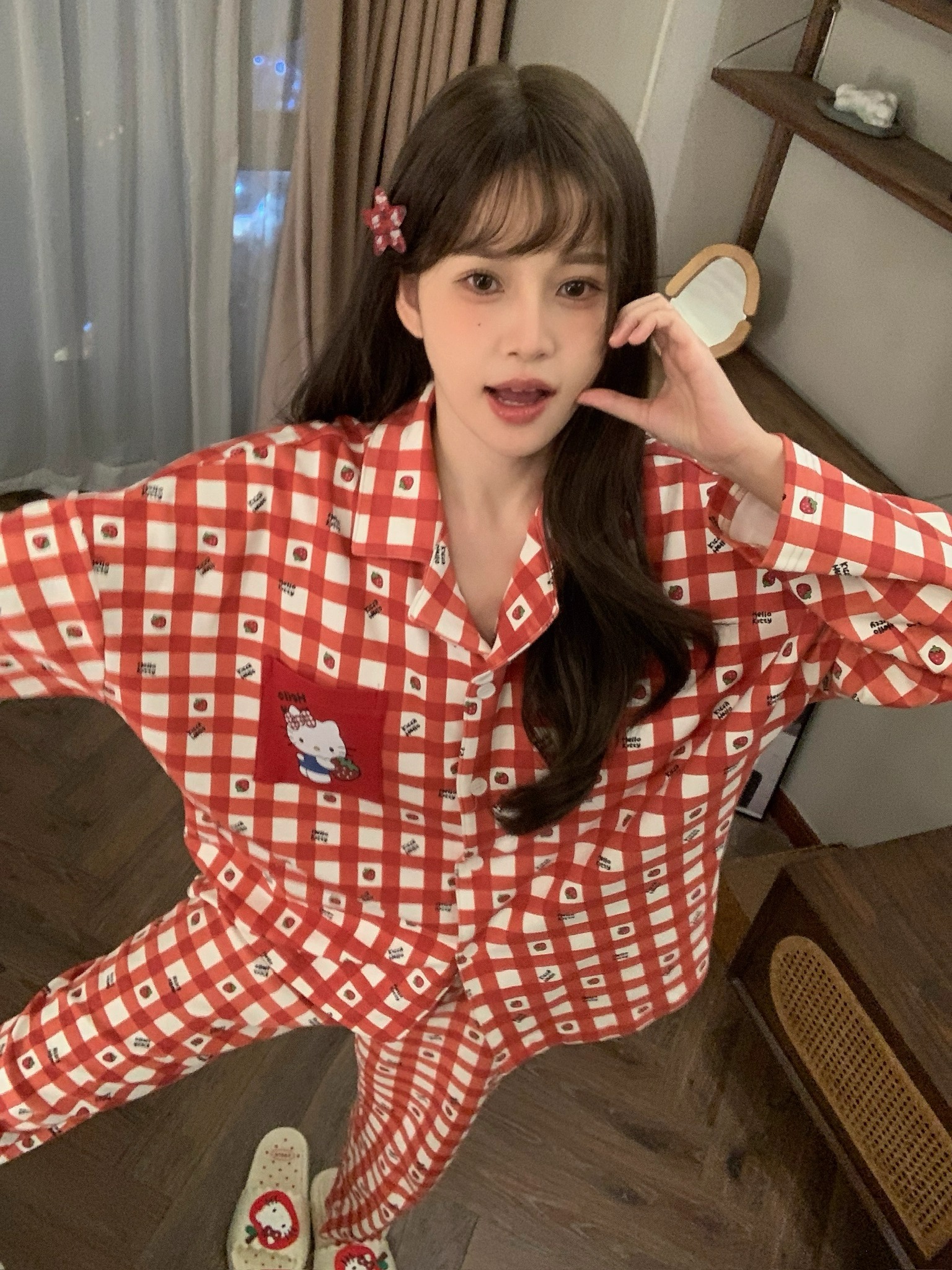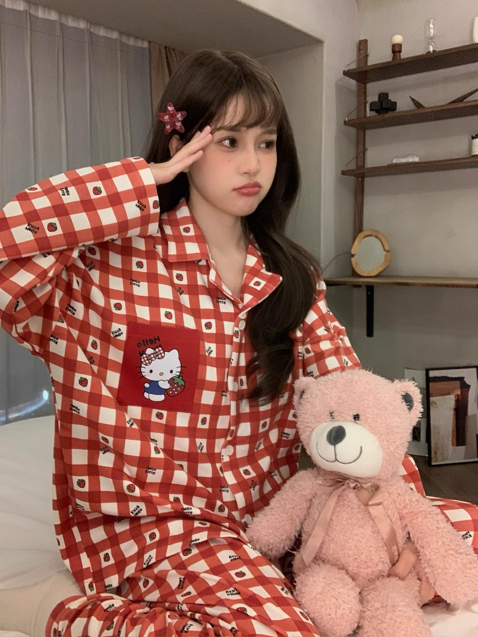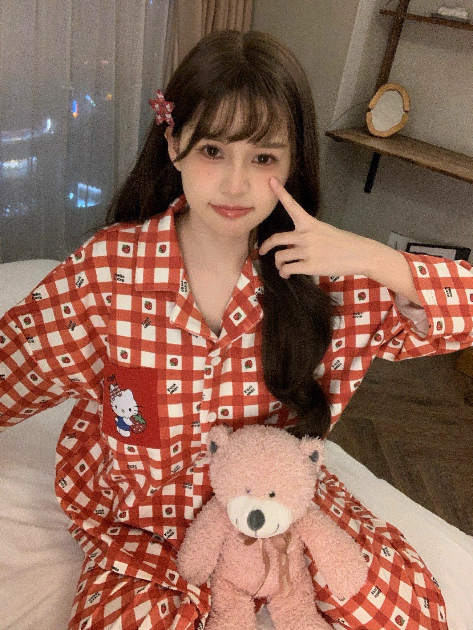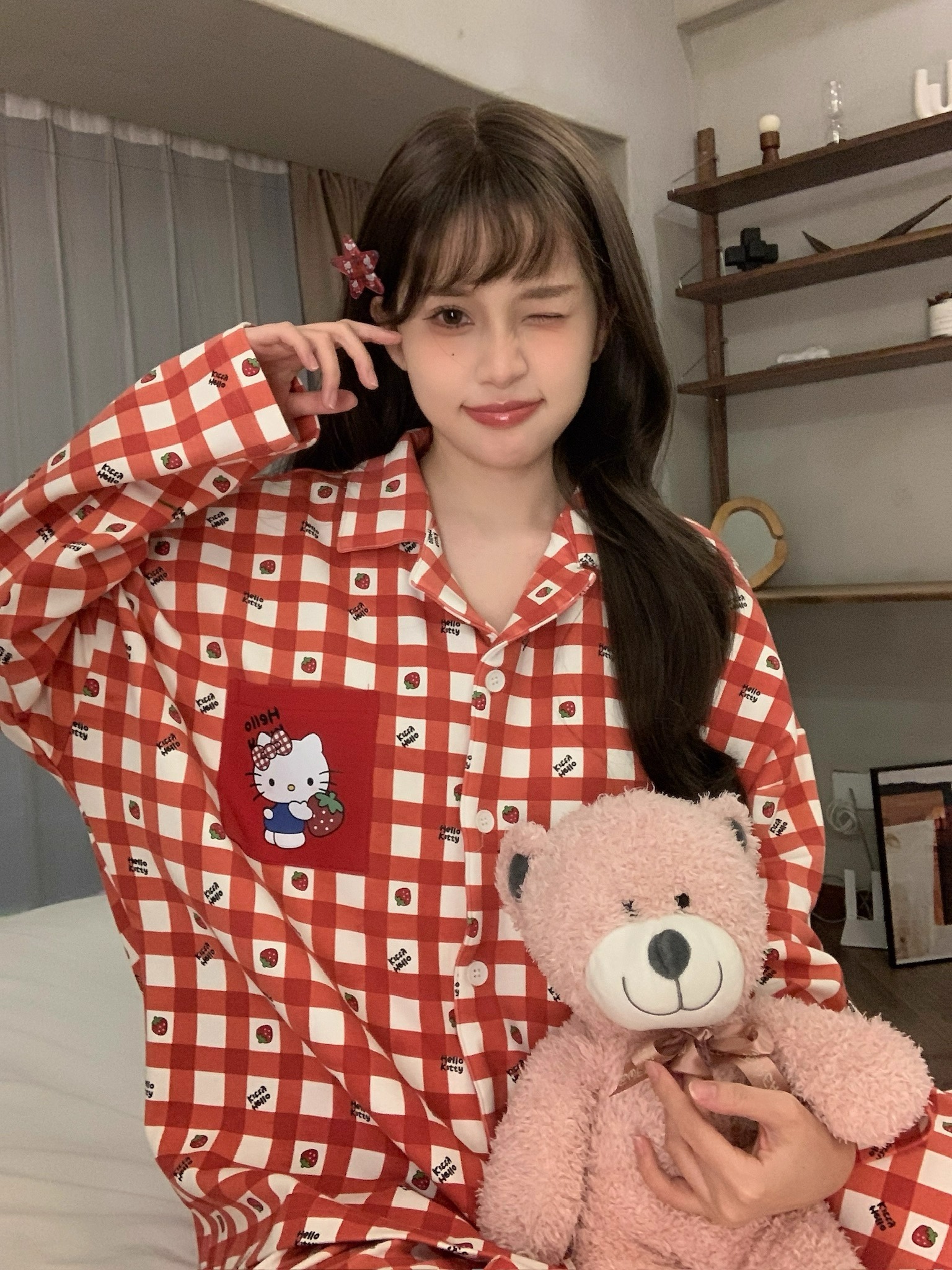 따듯하게 입을 수 있는 순면 키티 잠옷이에요 :)