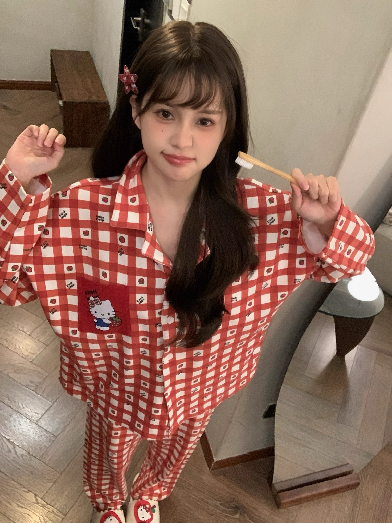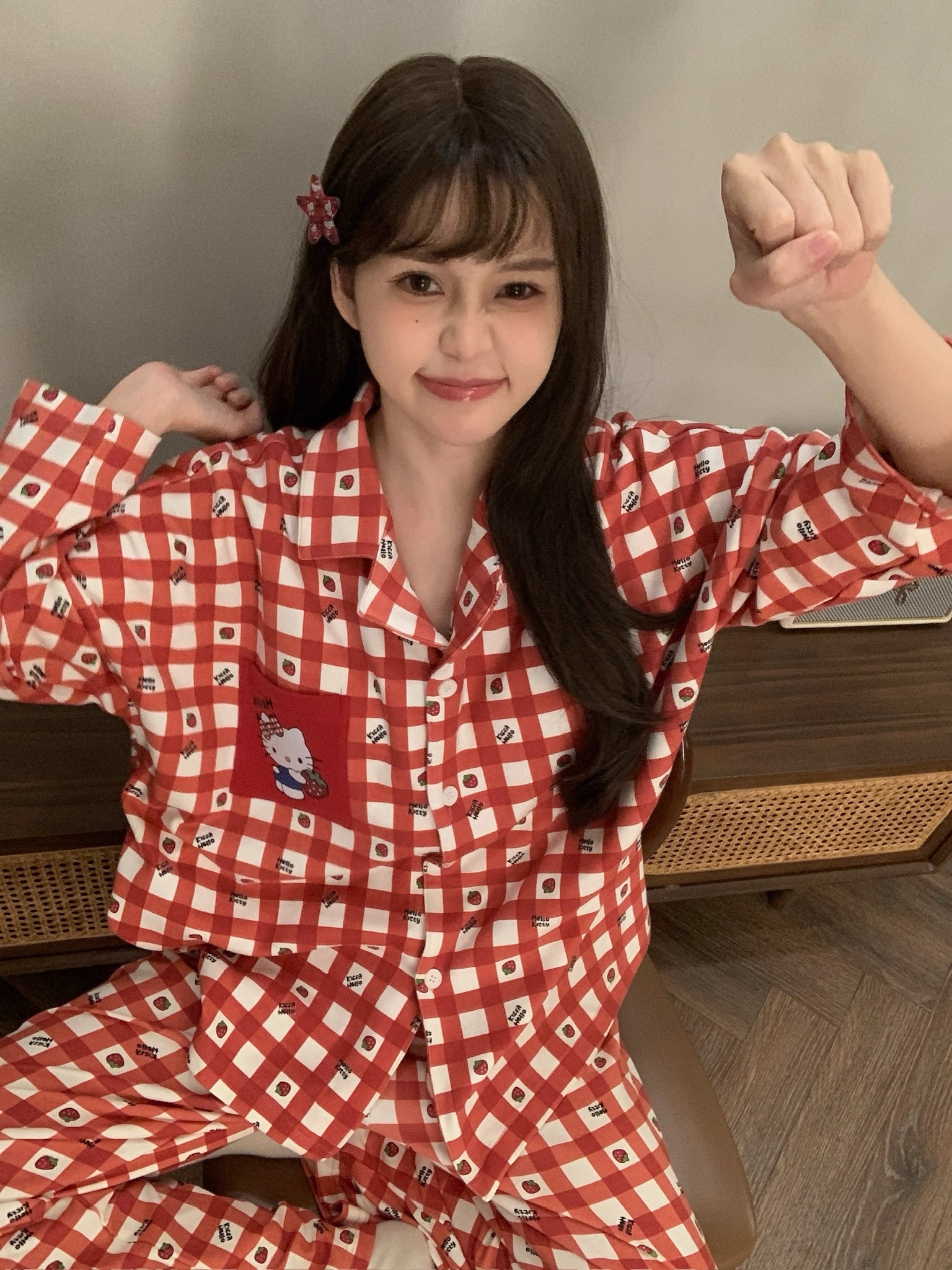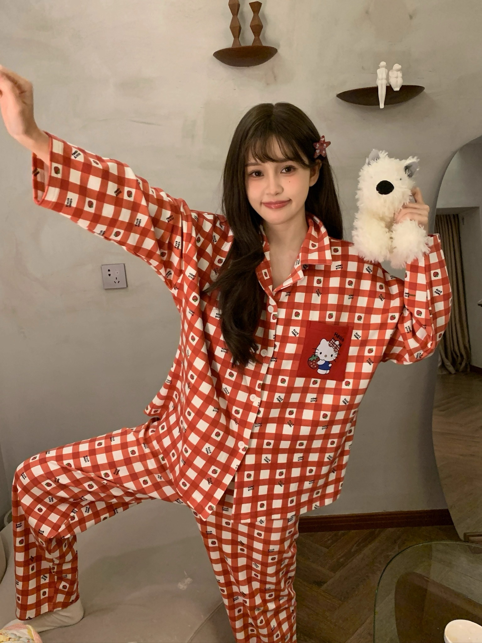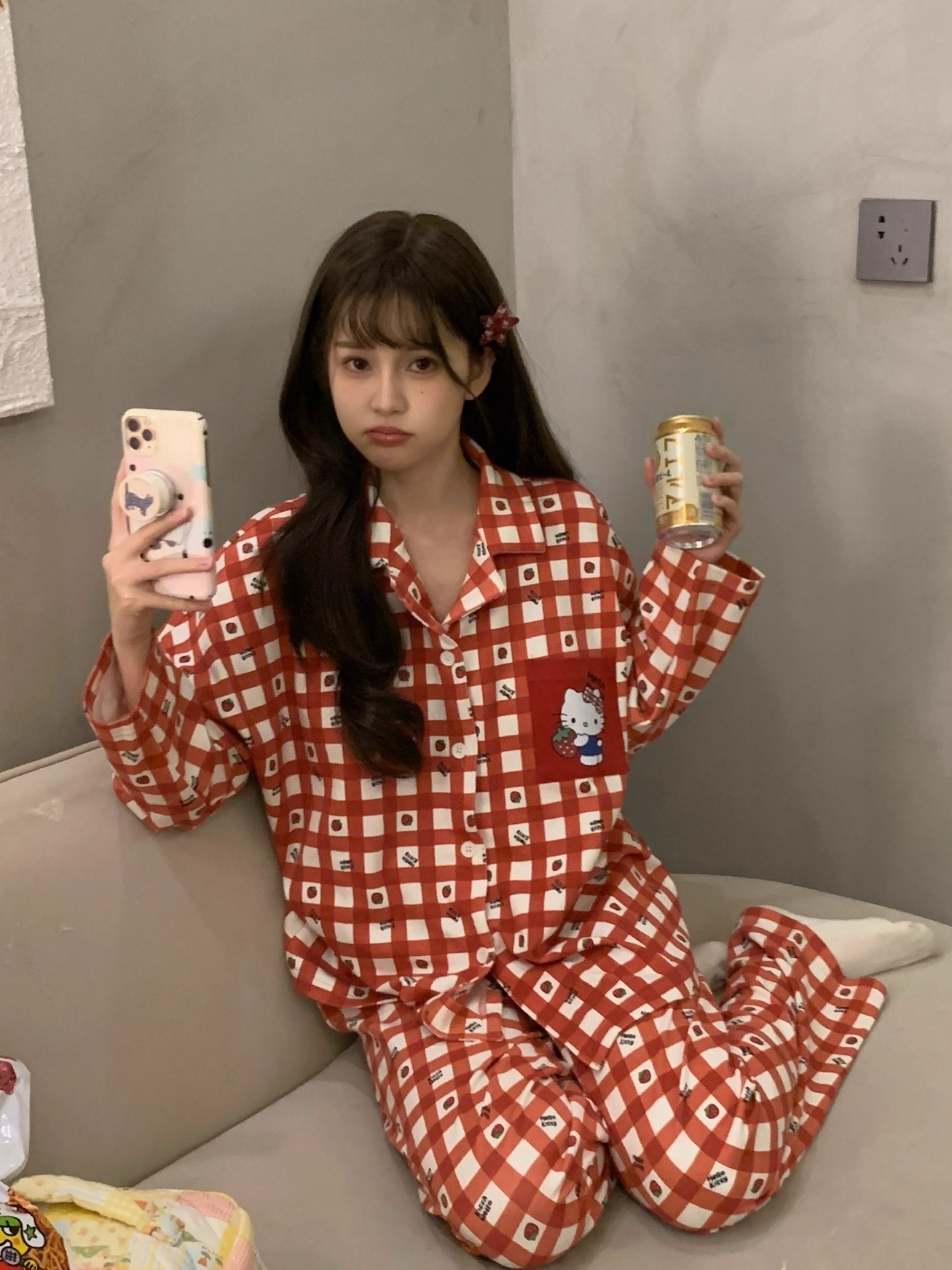 따듯하게 입을 수 있는 순면 키티 잠옷이에요 :)