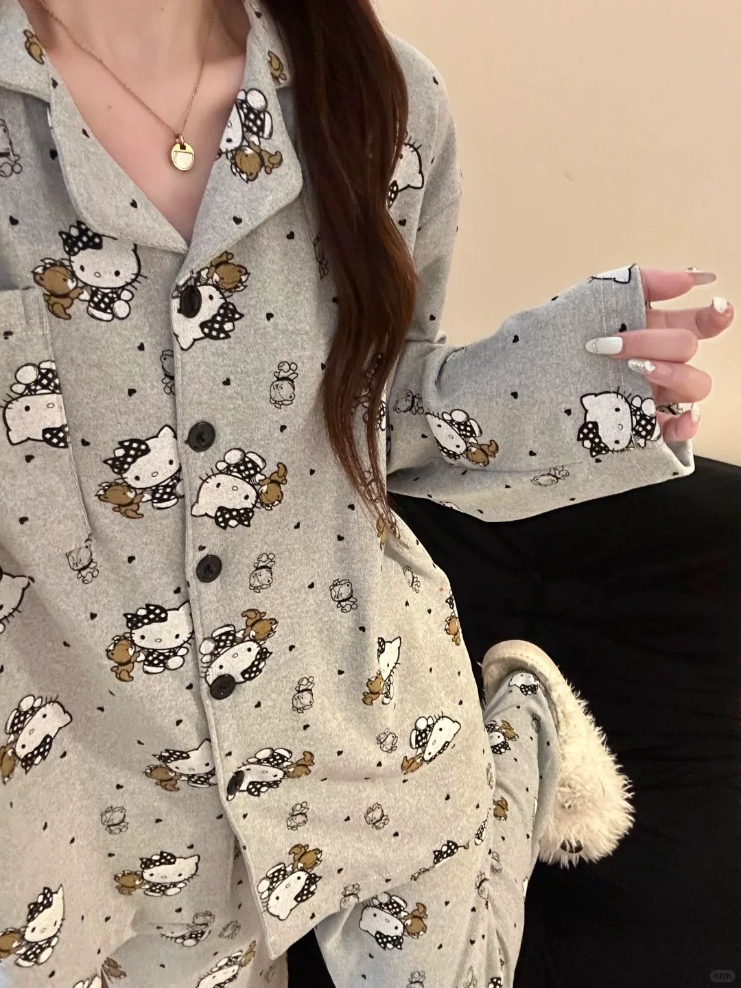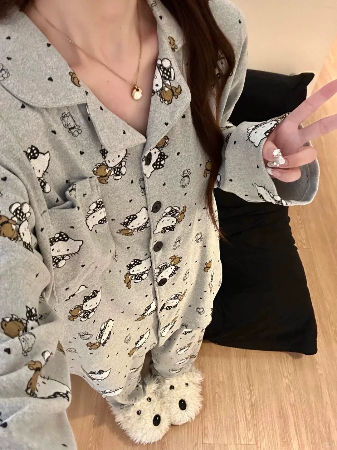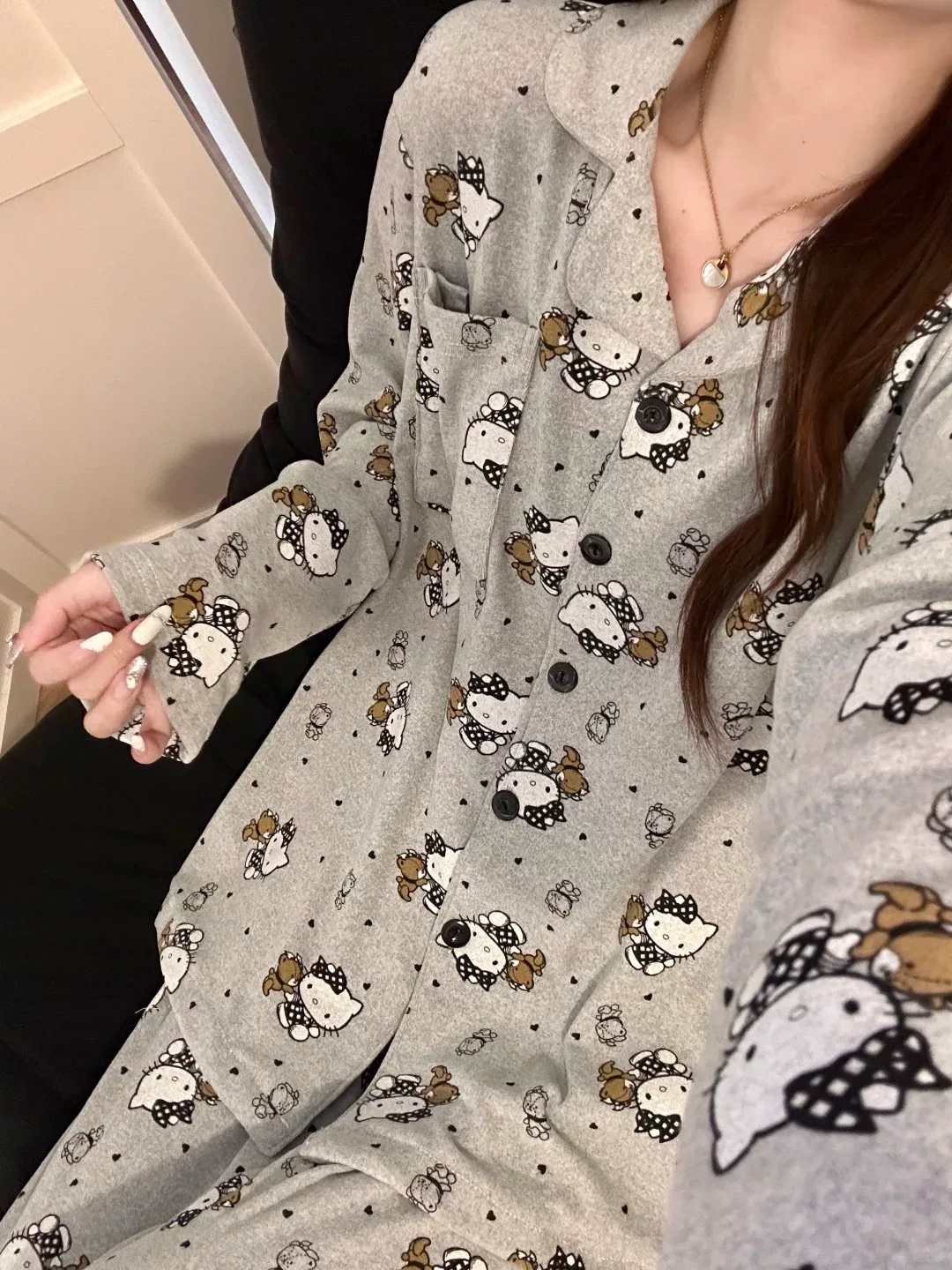 귀겨운 도트무늬 리본을 한 키티 잠옷!